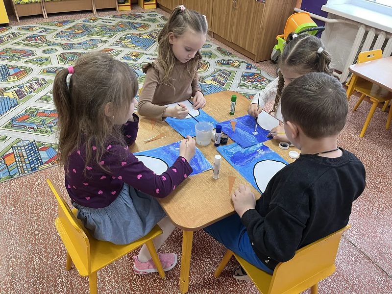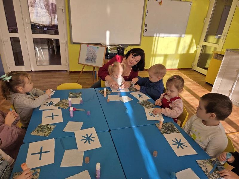 Малыши с восторгом рассматривали картинки с изображением снежных пейзажев, слушали рассказ о том, как снег падает с неба и превращает мир в зимнюю сказку. А во время занятия по аппликации белые листочки детей покрылись красивыми снежинками.