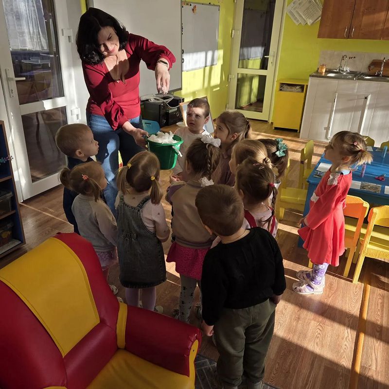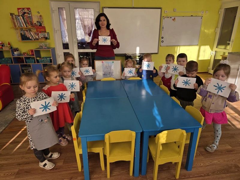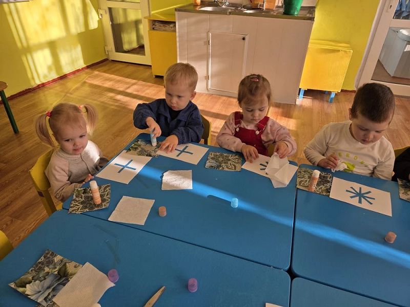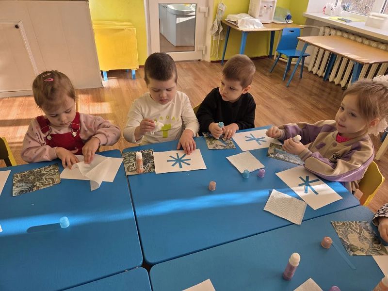 Малыши с восторгом рассматривали картинки с изображением снежных пейзажев, слушали рассказ о том, как снег падает с неба и превращает мир в зимнюю сказку. А во время занятия по аппликации белые листочки детей покрылись красивыми снежинками.