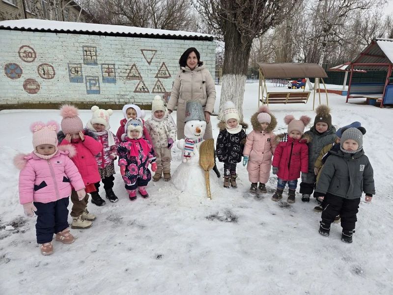 Дети группы "Зайчики" во время прогулки слепили весёлого снеговика. Прогулка прошла на славу! У всех детей было радостное настроение.