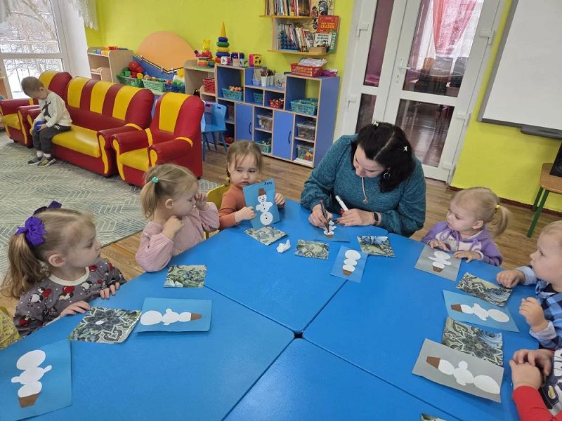 После прекрасной прогулки, на которой дети группы "Зайчики" лепили снеговика из снега, им захотелось поселить снеговиков и в нашей группе.