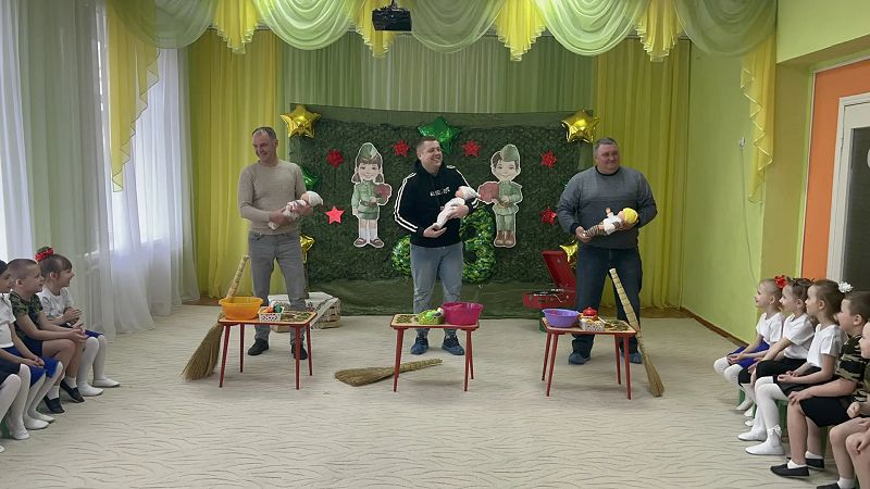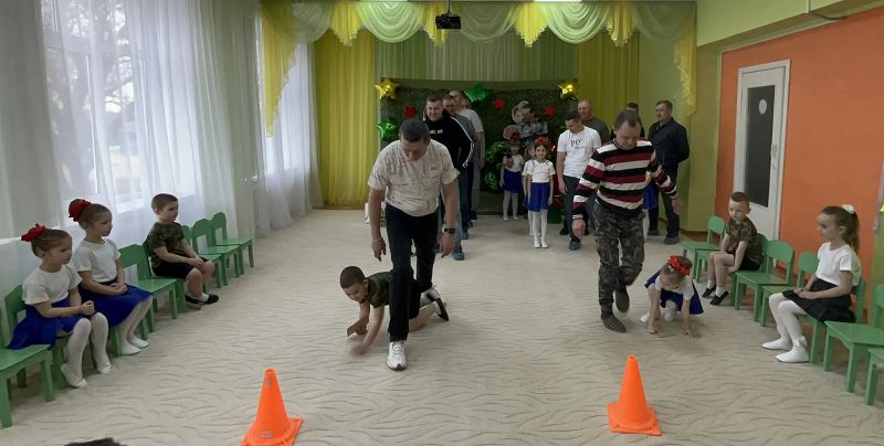 В конкурсе «Доставь секретное письмо» папы и дети показали себя ловкими, быстрыми, конкурс «Сапёры» показал какие наши папы меткие. С успехом папы прошли испытания «Завяжи бант», «Помощники».