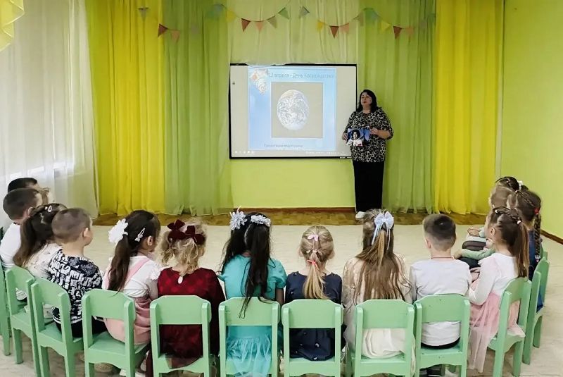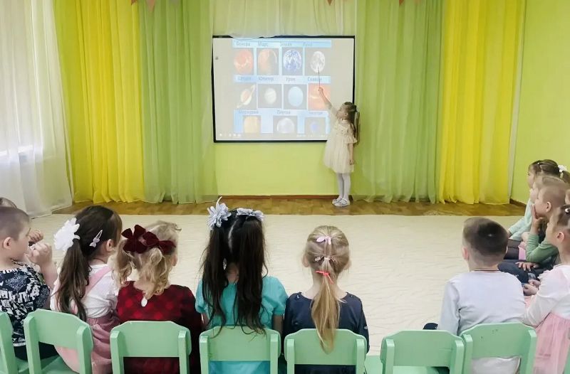 Дети узнали историю первого полёта человека в космос и интересные факты о космосе, такие как первый полёт животных в космос, о знаменитых космонавтах, о том как готовятся к полёту космонавты.
