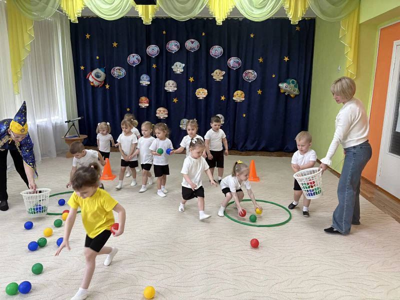 Наше путешествие началось с зажигательного танца групп «Пчелки» и «Ежики». Каждое движение было наполнено энергией и предвкушением великих открытий. В гости к нам заглянул сам Звездочет, и вместе с детьми он отправился в межпланетное странствие. Они вихрем пронеслись сквозь космическую пыль, посещая таинственные планеты, где их ждали непростые испытания и захватывающие открытия.