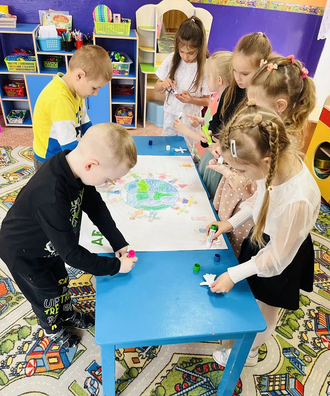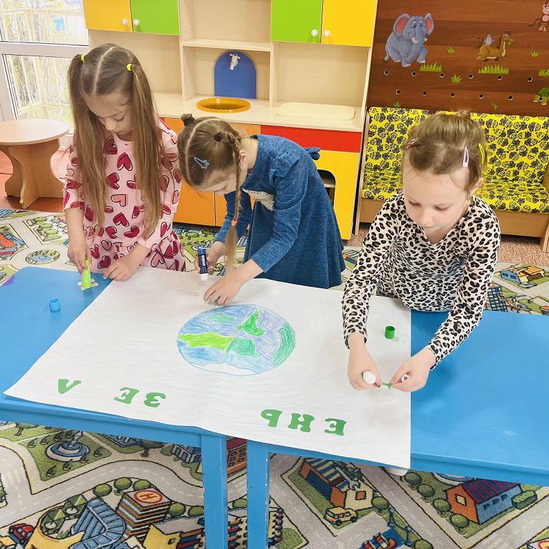 В конце занятия ребята с любовью делали коллективную аппликацию «Защитим нашу планету».
