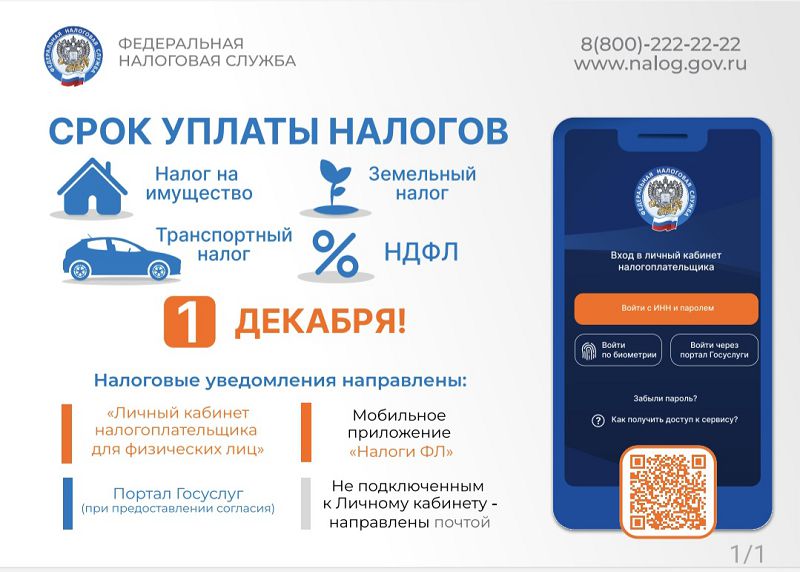 До 1 декабря 2025 года включительно — срок уплаты налогов физических лиц за 2024 год.