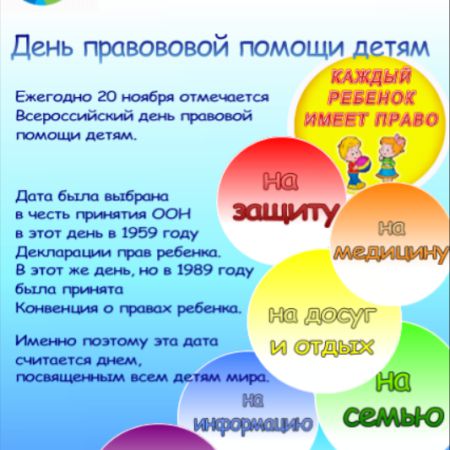 20 ноября 2025 года по всей России прошли мероприятия, посвященные Всероссийскому дню правовой помощи детям, приуроченная к Всемирному дню ребенка.