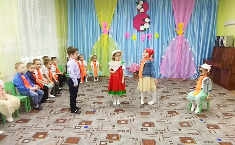 Нежные, трогательные танцы, песни и стихи были исполнены в честь мам и бабушек. А весёлыми, задорными танцами и играми дети веселили гостью Вредину.