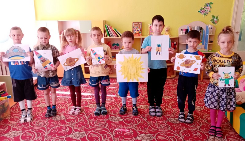 Дети узнали, что наша планета называется ЗЕМЛЯ, что она круглая, что мы на ней живем, познакомились с космическими телами (планетами, метеоритами, кометами), узнали, кто такой космонавт и каким он должен быть (сильным, смелым, умным и здоровым), и о других интересных явлениях, связанных с космическим пространством. Знания, полученные в детском саду, дети закрепили в своих творческих работах «Планеты солнечной системы». Рисунки выполнены с большой фантазией и представляли собой яркий мир красок, звёзд, ночного неба нашей галактики.