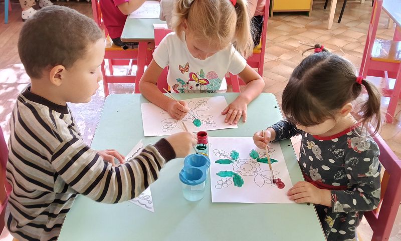 В группе «Белочки» прошло занятие по рисованию в рамках реализации регионального компонента с целью: формировать желание создавать узоры на листе бумаги в форме платочка. Воспитывать интерес к народному искусству, любовь и уважение к народным традициям.