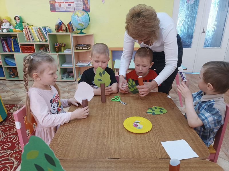Воспитатель Яфина И.В. побеседовала с детьми о лесе, его обитателях, о пользе леса для окружающего мира и людей, о его охране и о безопасном поведении в лесу. Ребята отгадывали загадки, играли в игры «Собери картинку», «Можно - нельзя», поиграли в хороводную игру «Во поле береза стояла», повторили «Правила поведения в лесу». Совместно с воспитателем ребята изготовили объёмную аппликацию «Лес».