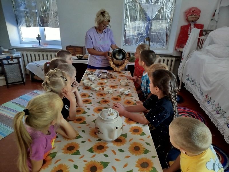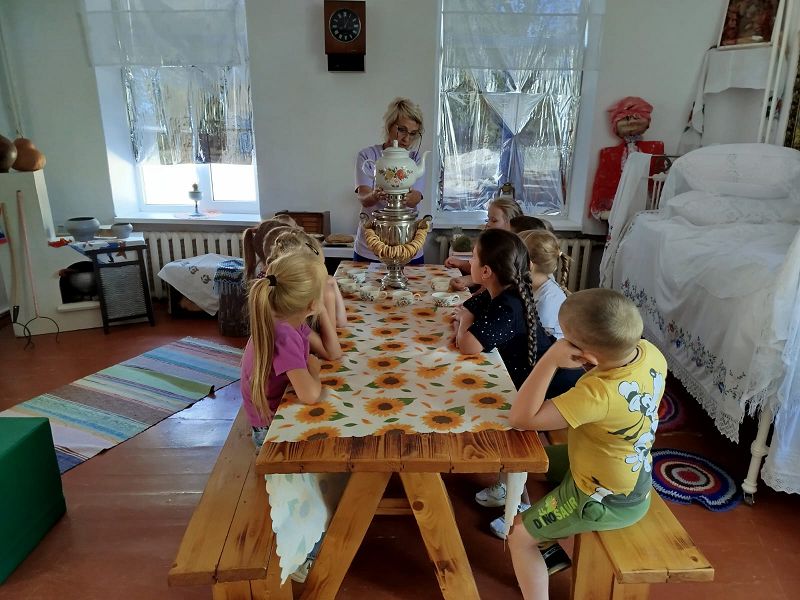 Группа «Ежики» посетили казачью комнату, где прошло познавательное мероприятие, посвященное Дню самовара.