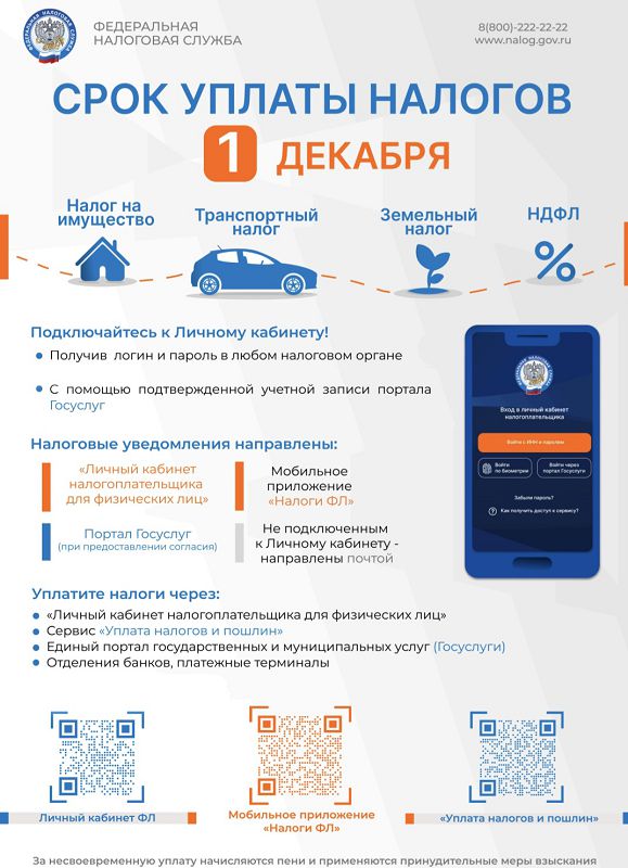 До 1 декабря 2025 года включительно — срок уплаты налогов физических лиц за 2024 год.