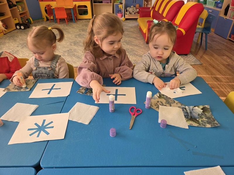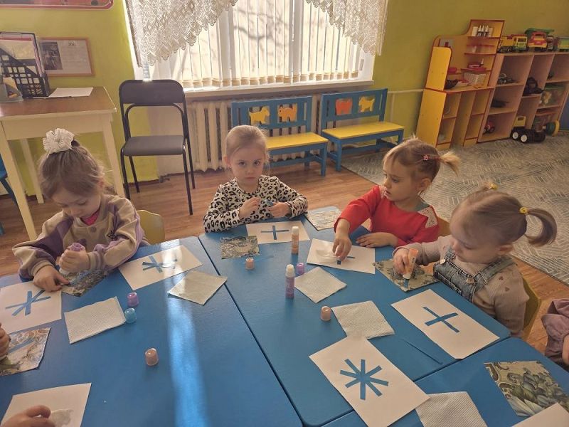 Малыши с восторгом рассматривали картинки с изображением снежных пейзажев, слушали рассказ о том, как снег падает с неба и превращает мир в зимнюю сказку. А во время занятия по аппликации белые листочки детей покрылись красивыми снежинками.