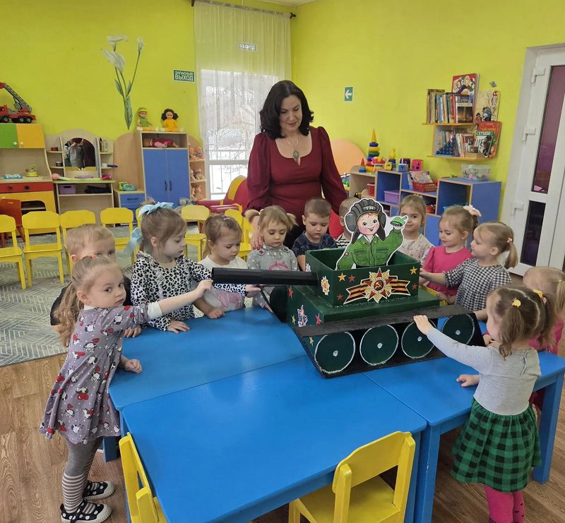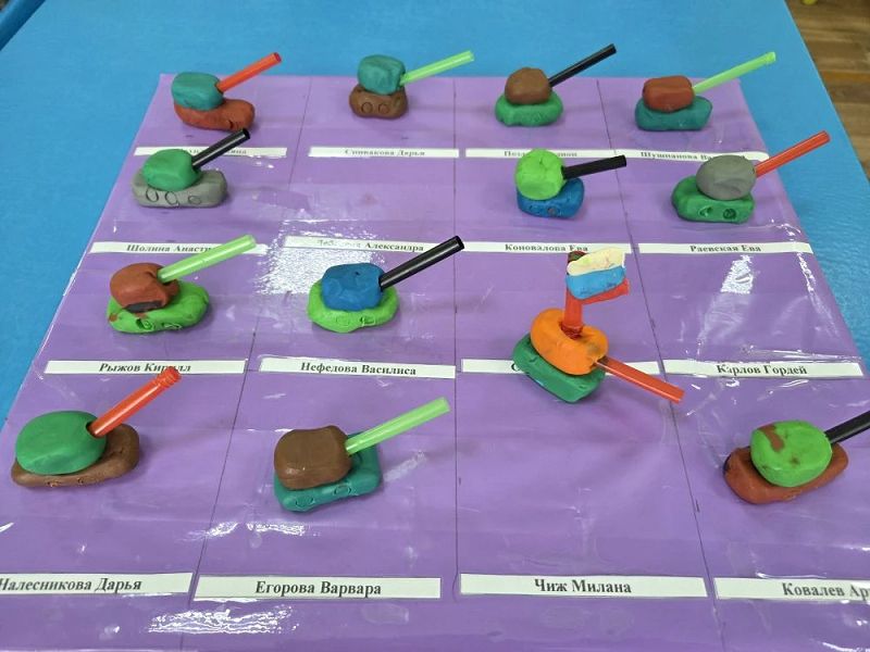 Была проведена беседа "Военные профессии ". Дети рассматривали макет танка, а в ходе занятия закрепили умение лепить из отдельных частей. Правильно передавать форму и пропорции, использовали предмет (вместо дула танка) нестандартной формы.