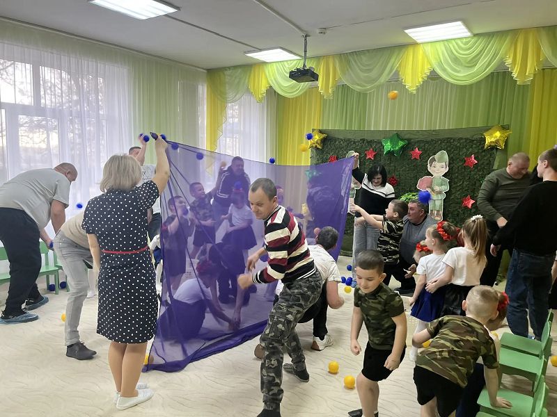 Папы и дедушки с удовольствием играли с детьми. После праздника все дети и папы сфотографировались на память.