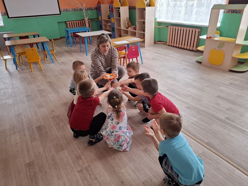 Давайте улыбнемся друг другу и скажем хором: «Доброе утро, хороший день!». Такими словами началось развивающее занятие педагога-психолога с детьми группы "Пчелки". Чтобы настроится на работу поиграли в игру «Солнышко в ладошках».