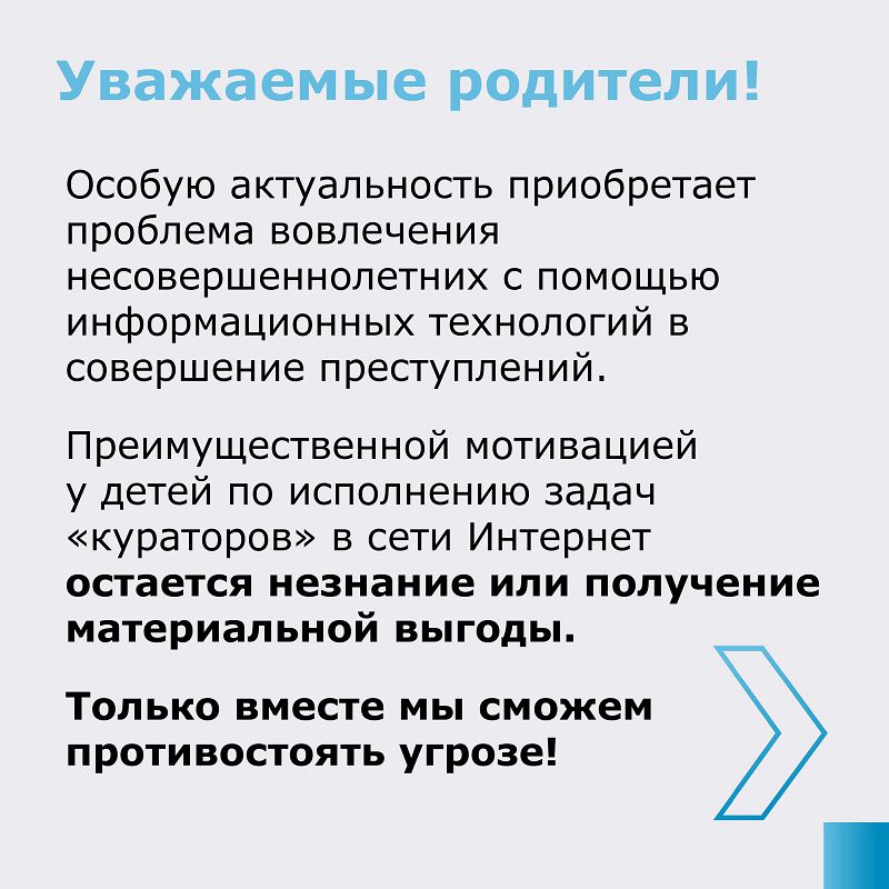 Уважаемые родители! Основной принцип вовлечения: — это ослабление контроля над действиями путём обмана, угроз, давления, введения в заблуждение. Будьте максимально бдительными, чаще разговаривайте с рёбенком, делитесь тем, что считаете важным в жизни, транслируйте ценности личным примером.